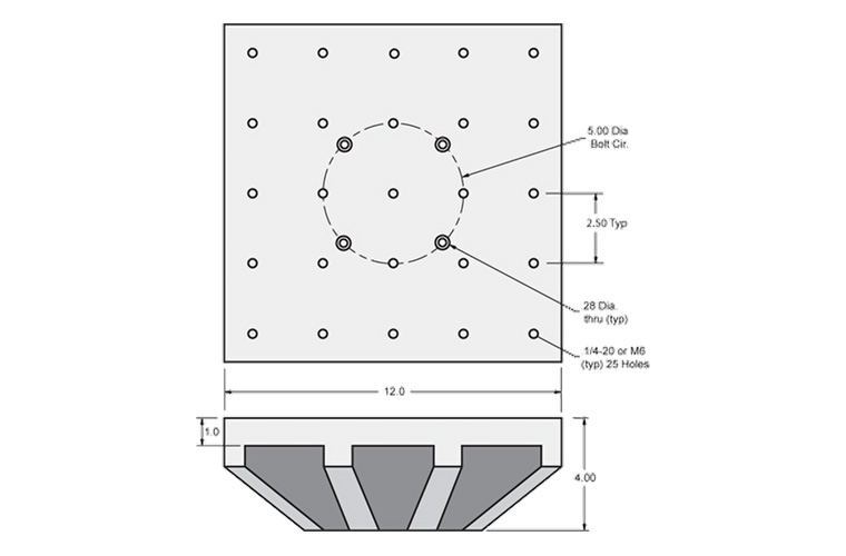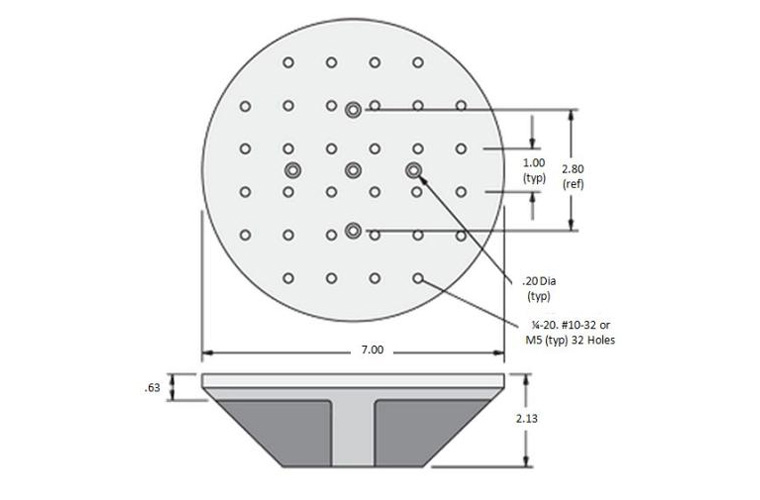 Head Expanders are designed to increase the mounting footprint of a vibration shaker mounting platform for vibration testing. By providing a broader mounting surface, the Head Expander allows shaker users to test objects larger than those that can be attached directly to the shaker platform. With the ability to test objects of greater size or footprint, Head Expanders permit shakers to be used in a more diverse range of applications. The Modal Shop Head Expanders are composed of lightweight magnesium, offering high strength-to-weight ratios. Model 2000X01 is designed for Model 2075E and 2110E shakers and comes with 10-32 threaded inserts.